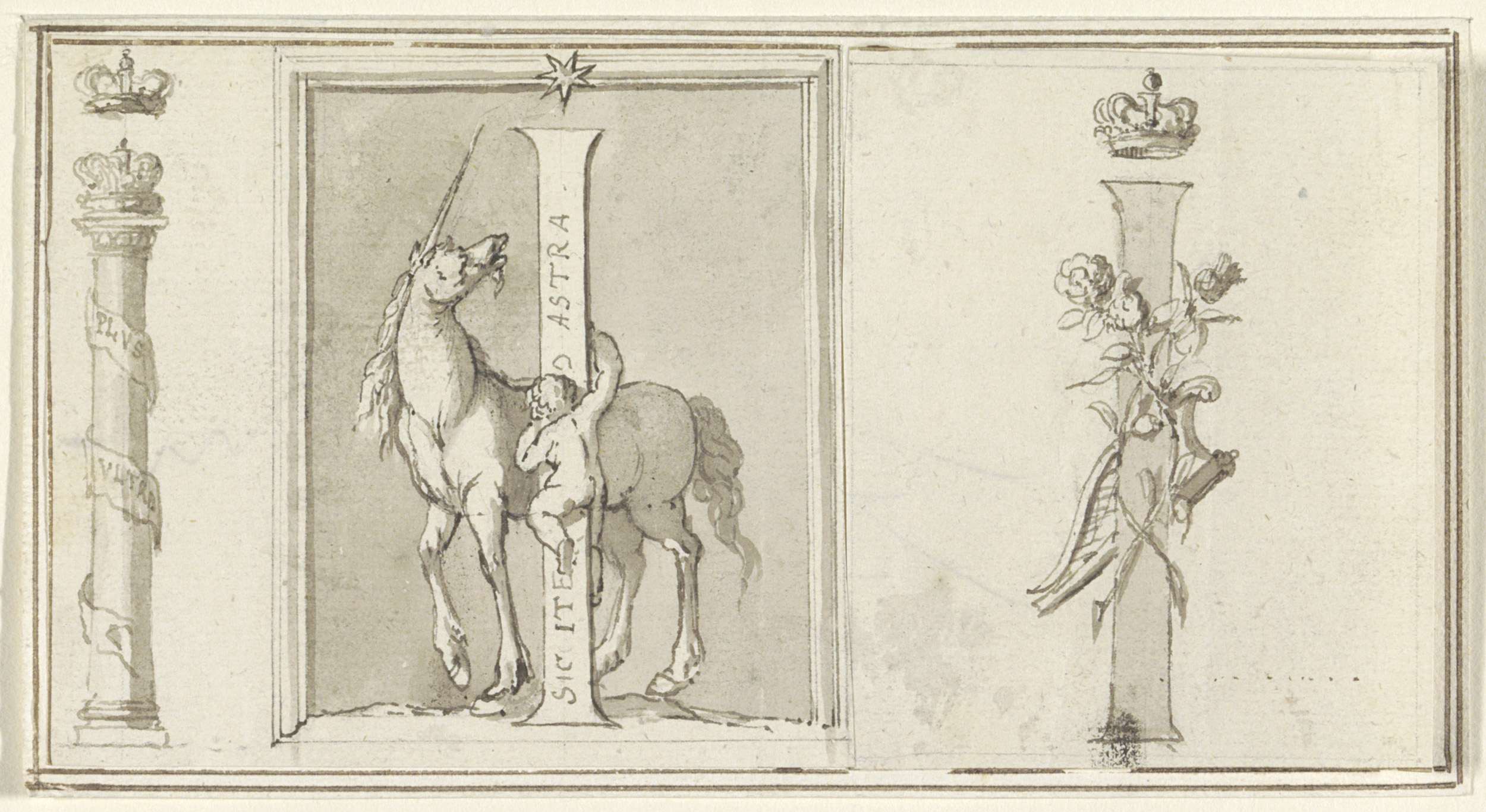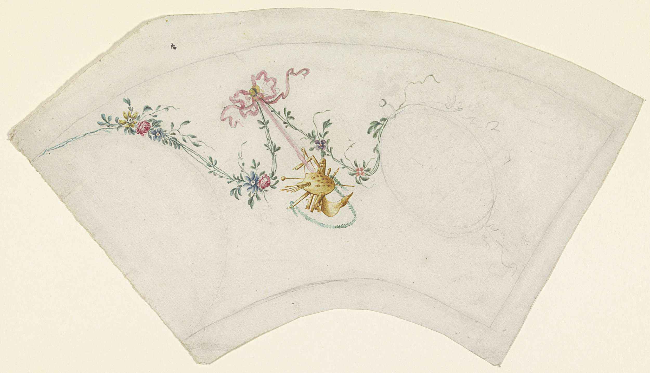 Medaillon en trofee met muziekinstrumenten