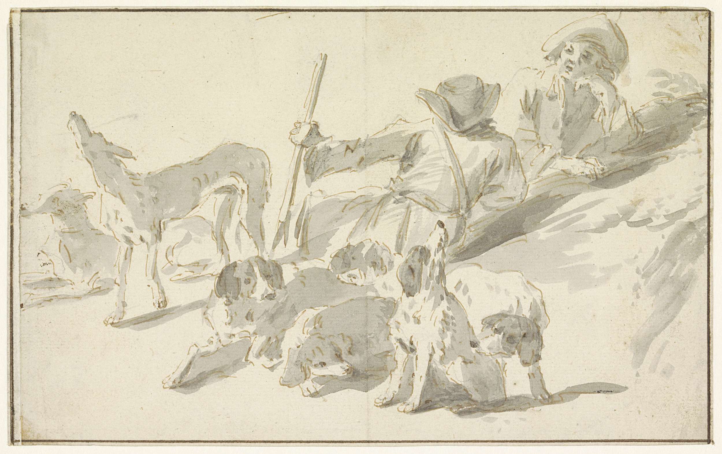 Studieblad met manskoppen en een hondenkop