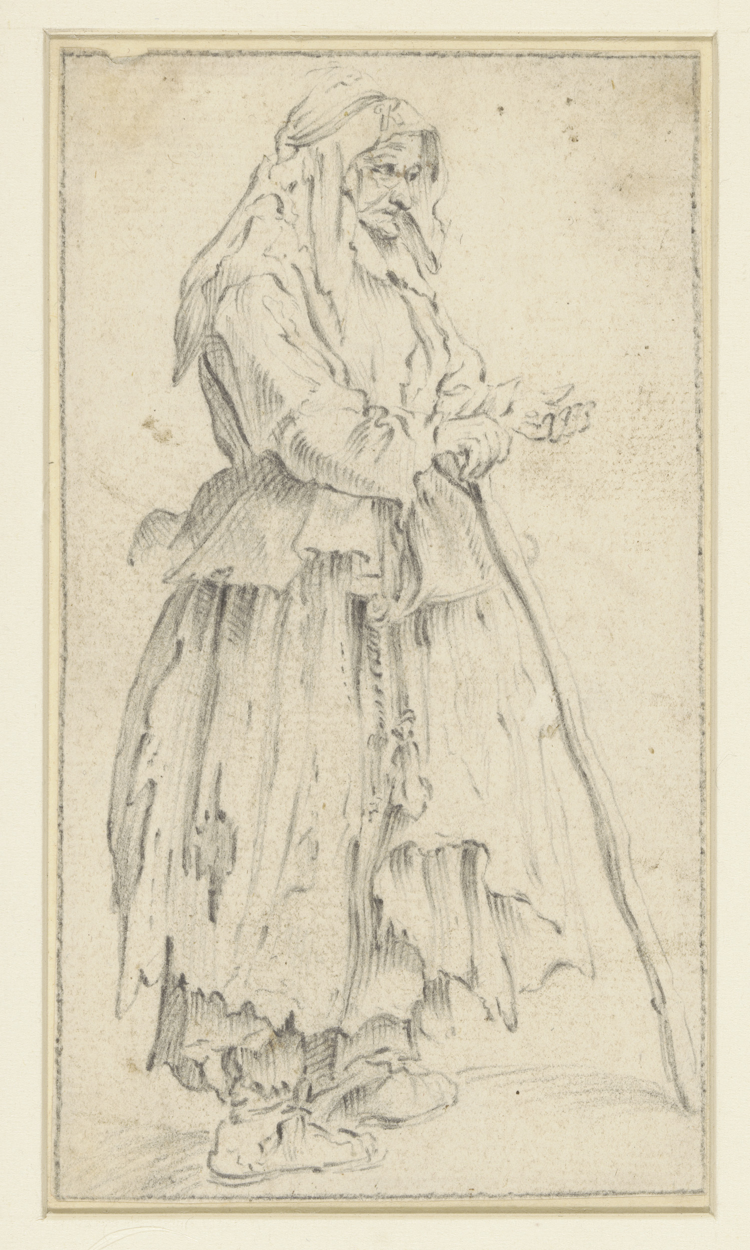 Bedelaar met stok, naar links