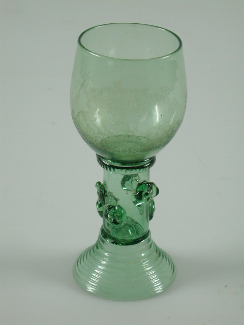 Roemer met diamantgravure van leeuw in Hollandse tuin