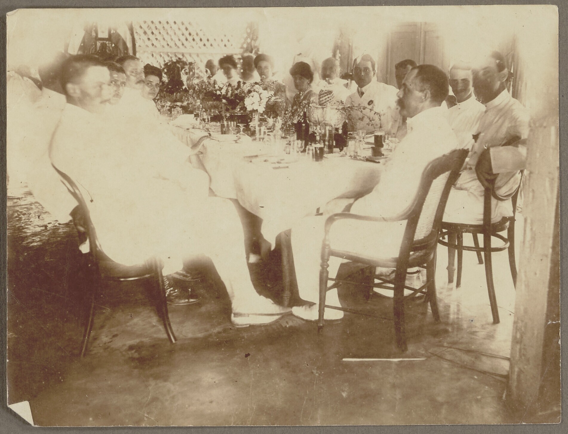 Gezelschap van Nederlandse en Indische personen op d...