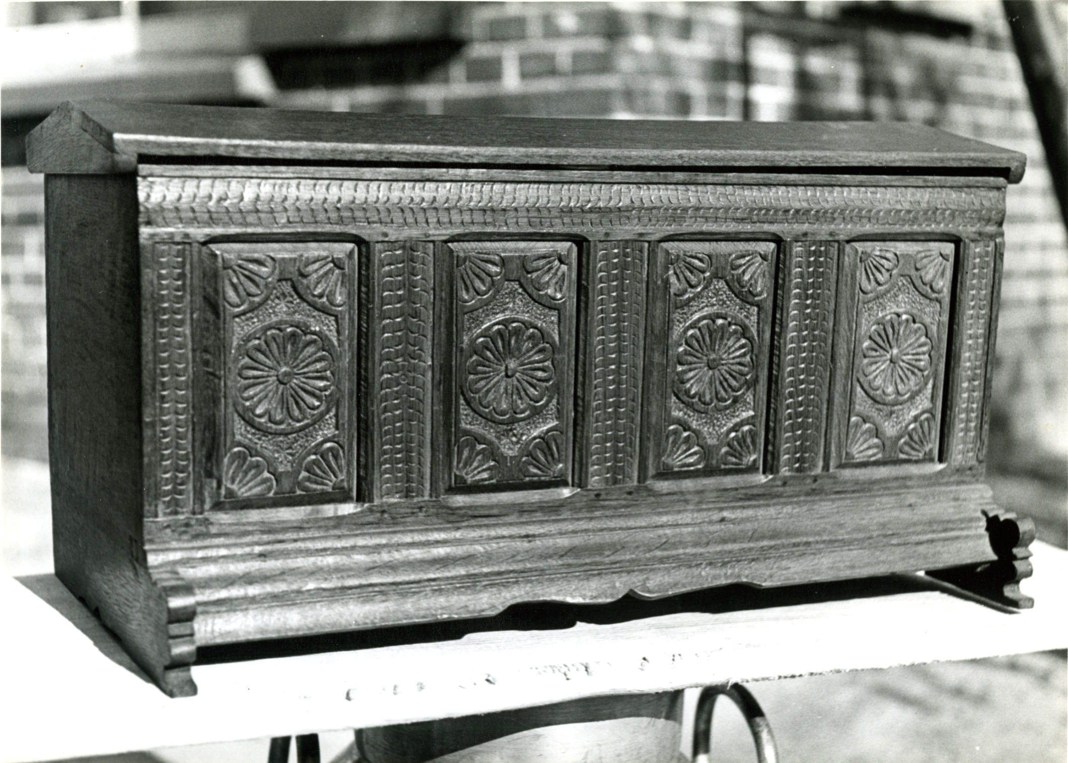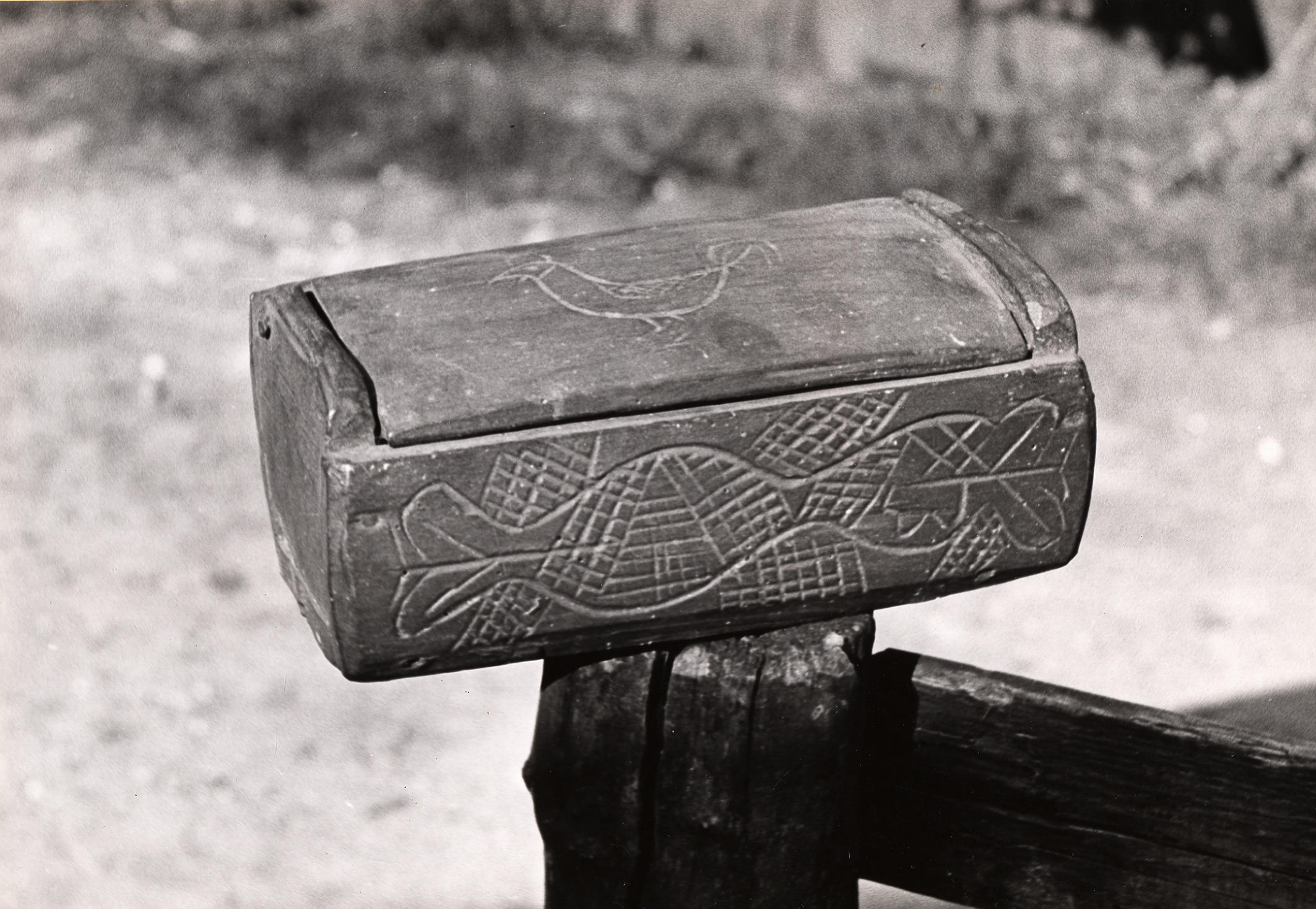 Houten kistje met snijwerk, Staphorst, 1944 (zwart-w...
