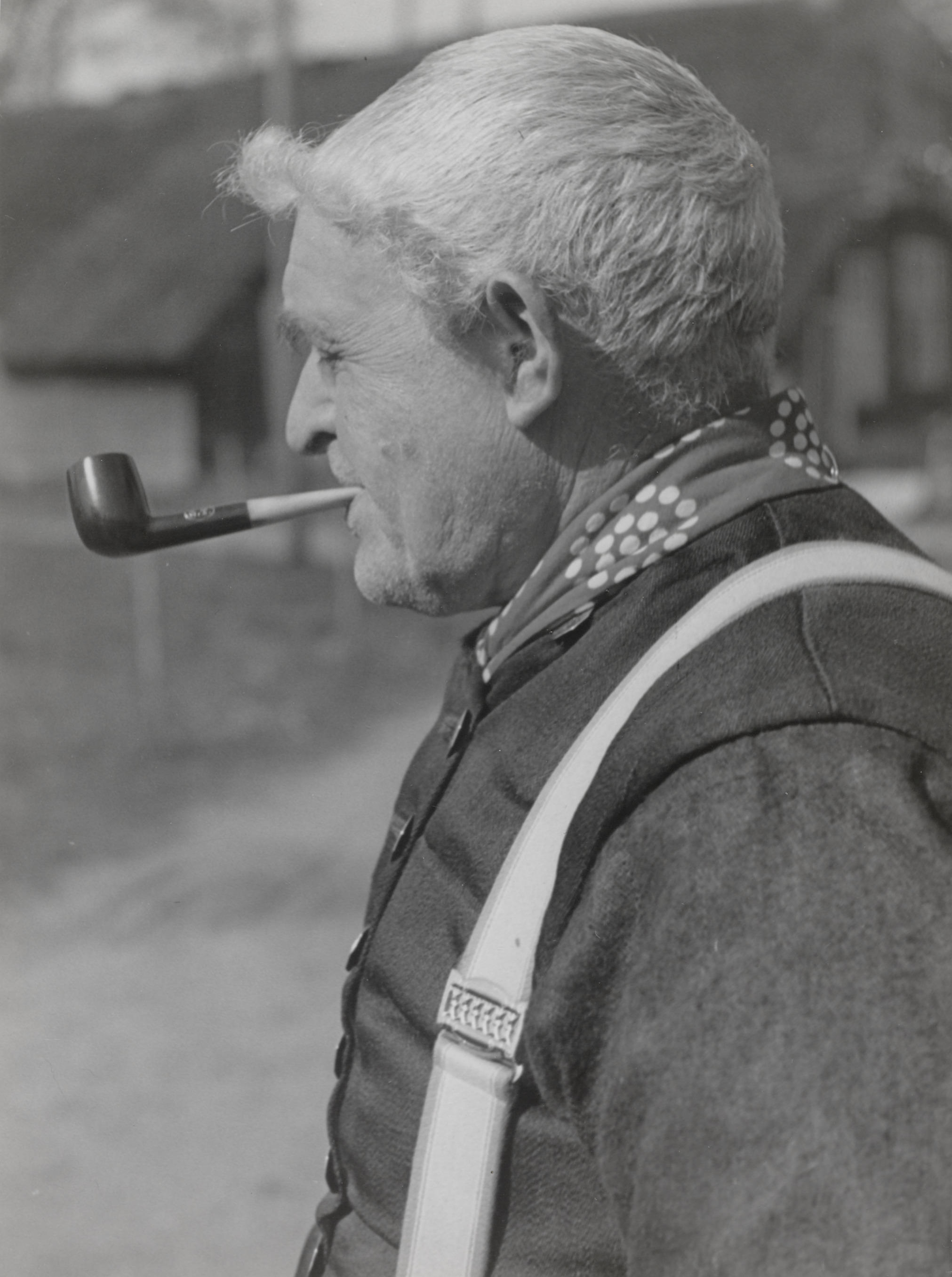 Jan Smit in Staphorster dracht, 1944 (zwart-wit foto)