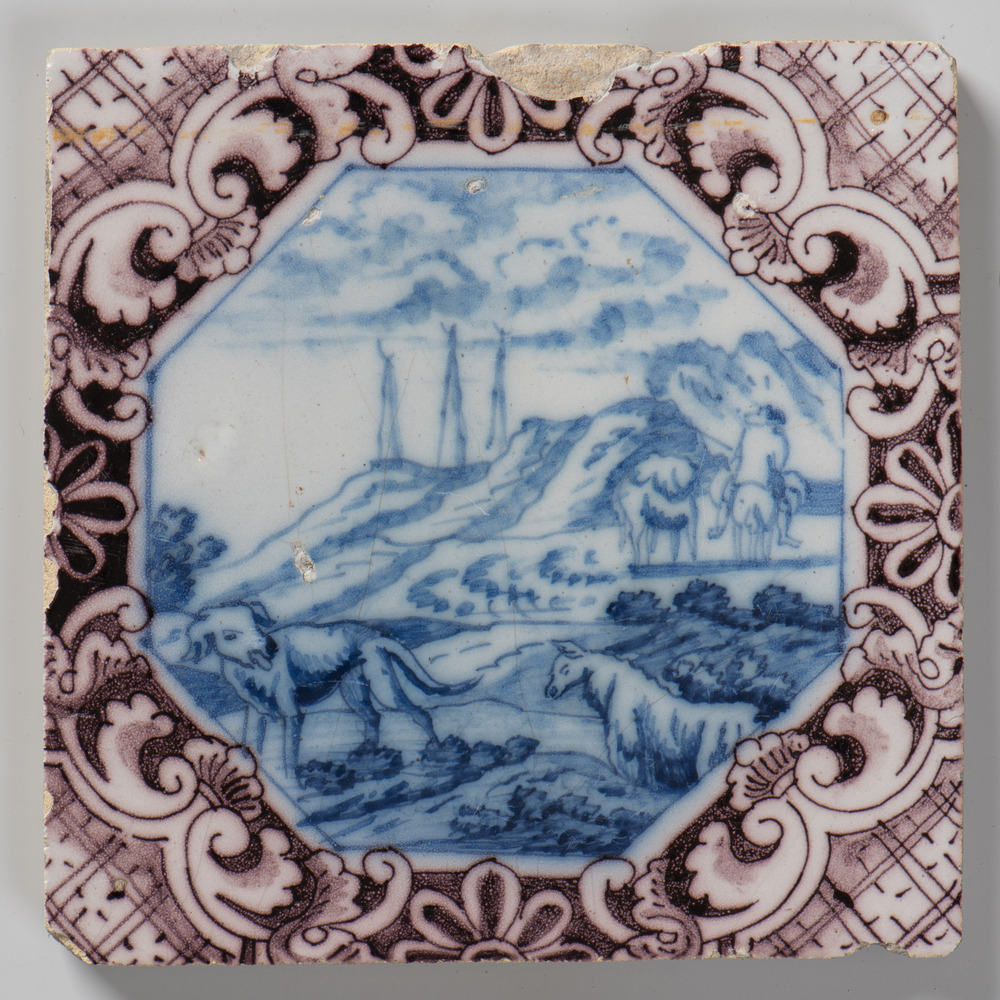 randtegel van aardewerk met tinglazuur, voorstellend...