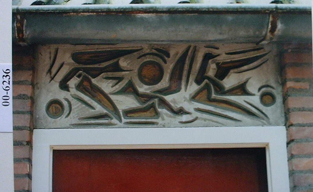 Tegel van keramiek met reliëfdecor van een gestileer...