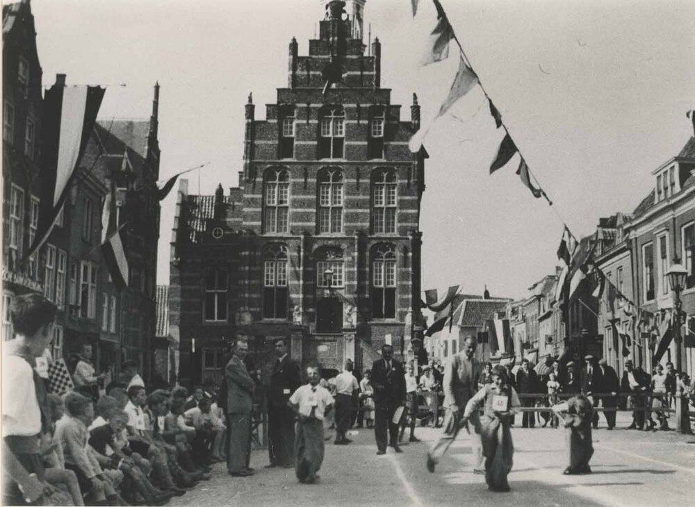 Foto, voorstellende oranjefeest op de Markt te Culem...