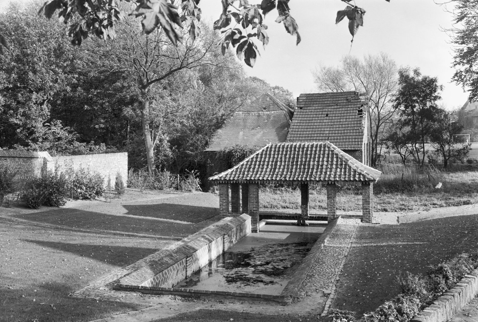 Overzicht binnenplaats, op voorgrond links oude lood...