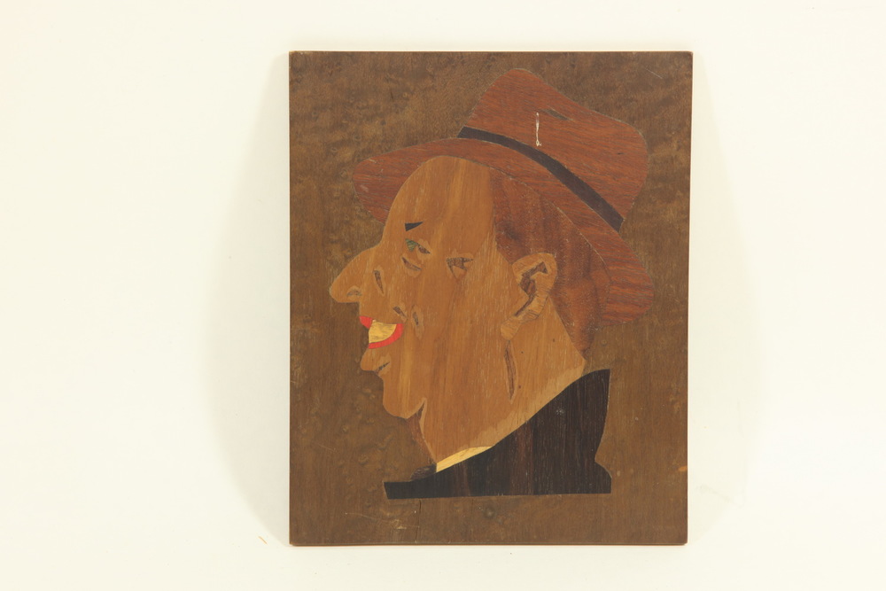 Portret van Karel Lotsij, ingelegd hout in paneel, c...