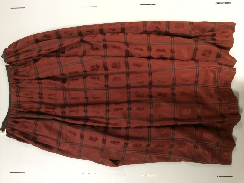 Geruite wollen rok, van kostuum met ingeweven bloemen