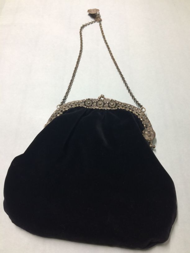 Zwart fluwelen beugeltas met alpacca sluiting, afgeb...