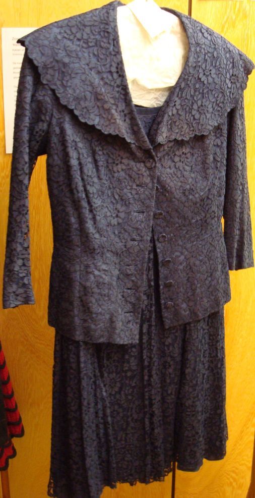 Rok van blauwe kant met platte kraag, deux-pièces, o...
