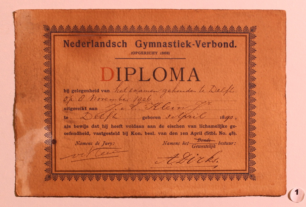 Diploma lichamelijke geoefendheid J.A. Klein jr 1906