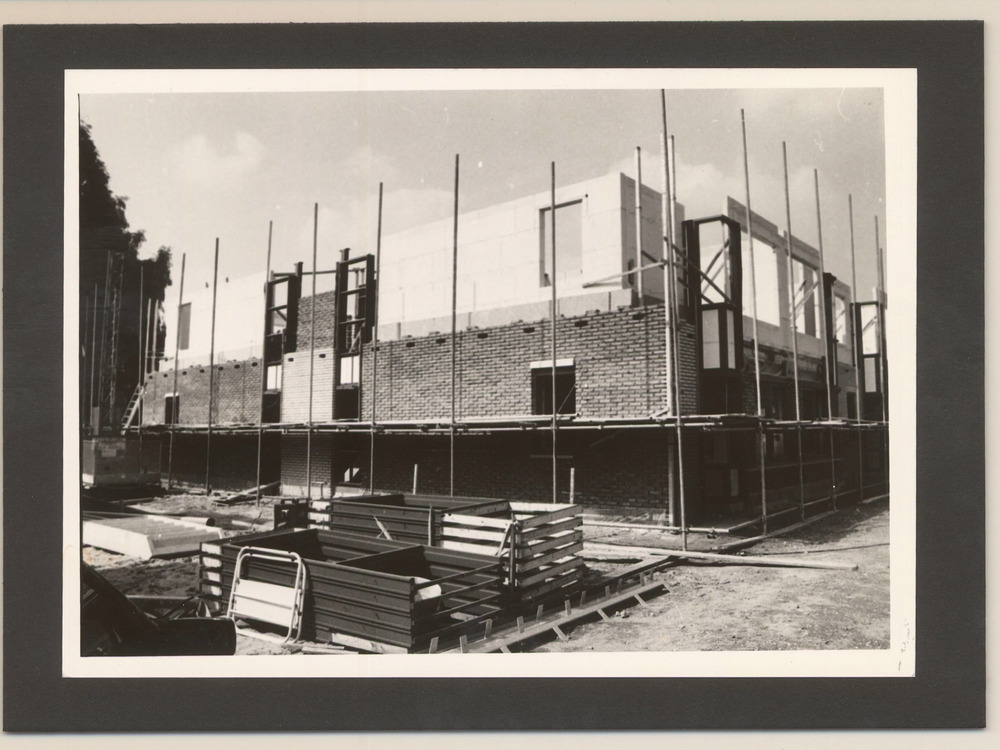 Het Gemeentehuis Kesteren tijdens de aanbouw en de v...