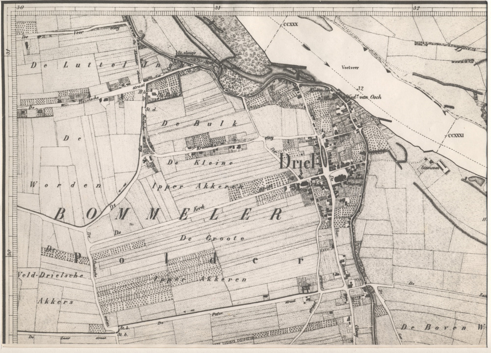 kadastrale kaart van Driel met topografische aanduid...