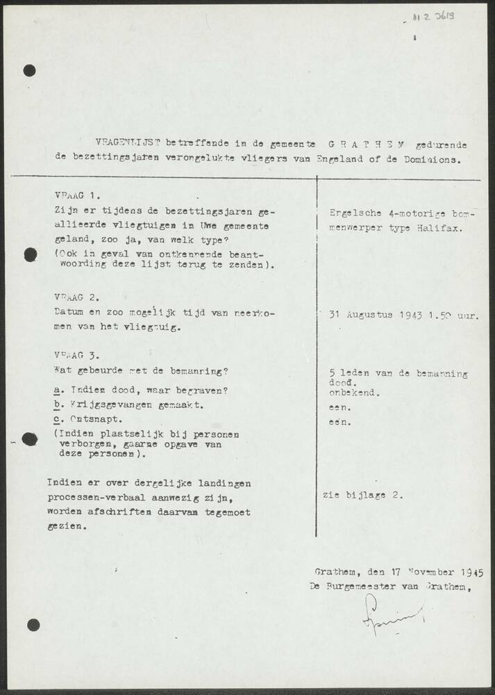 Vragenlijst gemeente Grathem 17 november 1945.