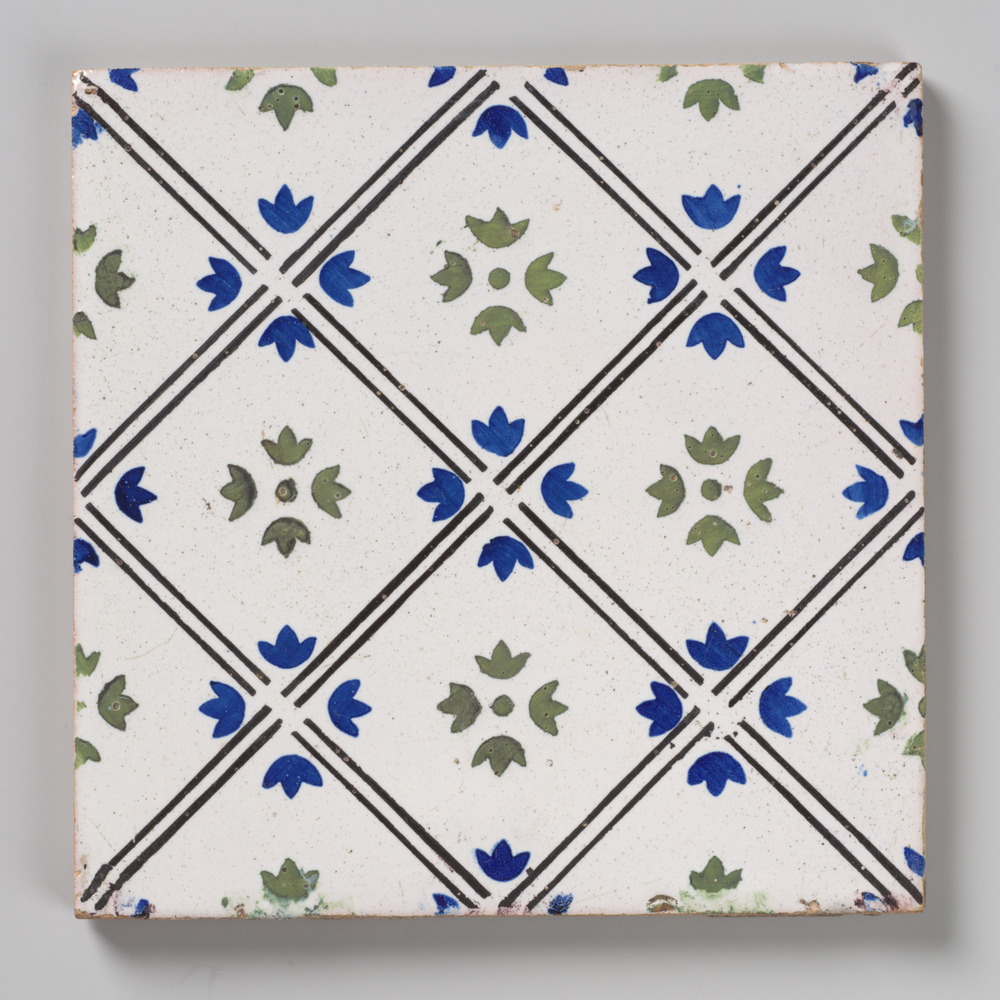 tegel van keramiek met tinglazuur, voorstellende: ze...