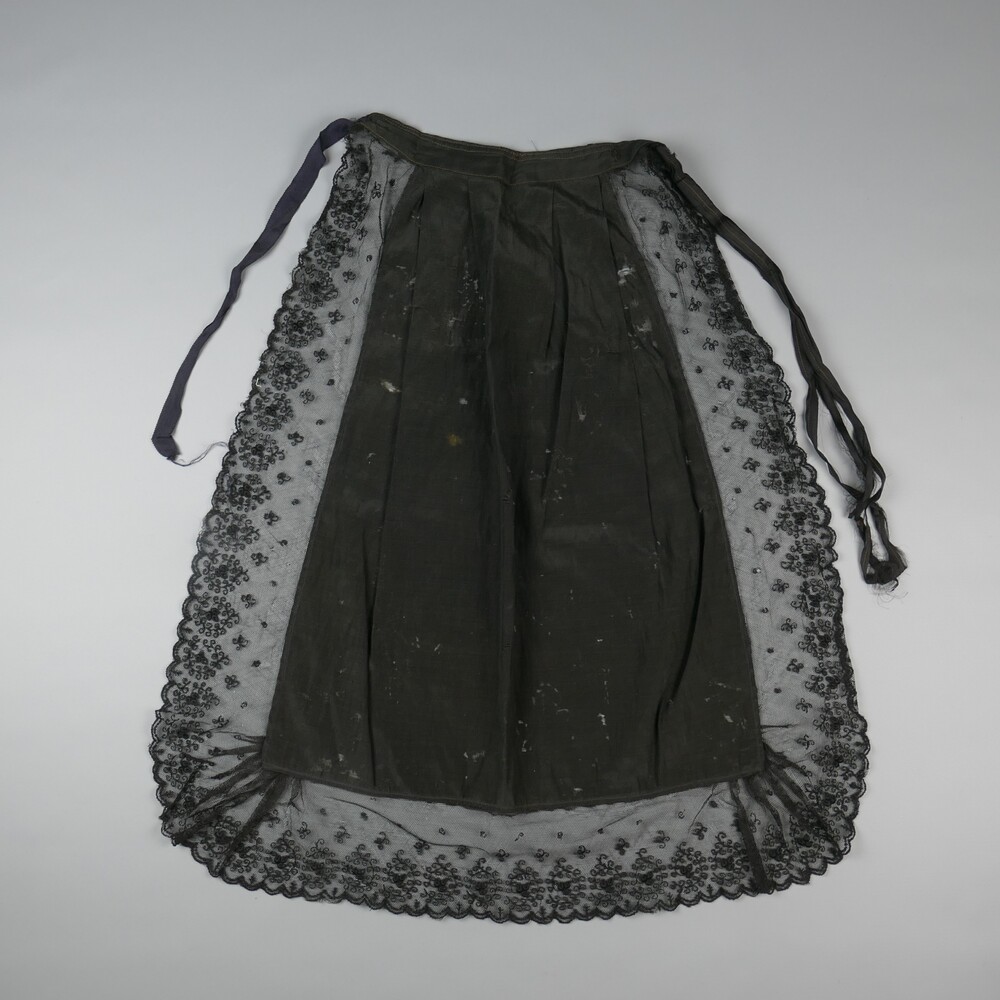 schort van zwarte stof en zwarte kant, geassocieerd ...