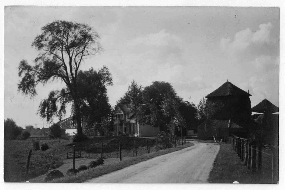 Foto, voorstellende de dijk met huize Landlust te Sc...