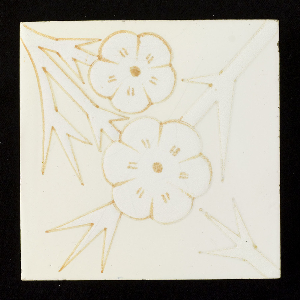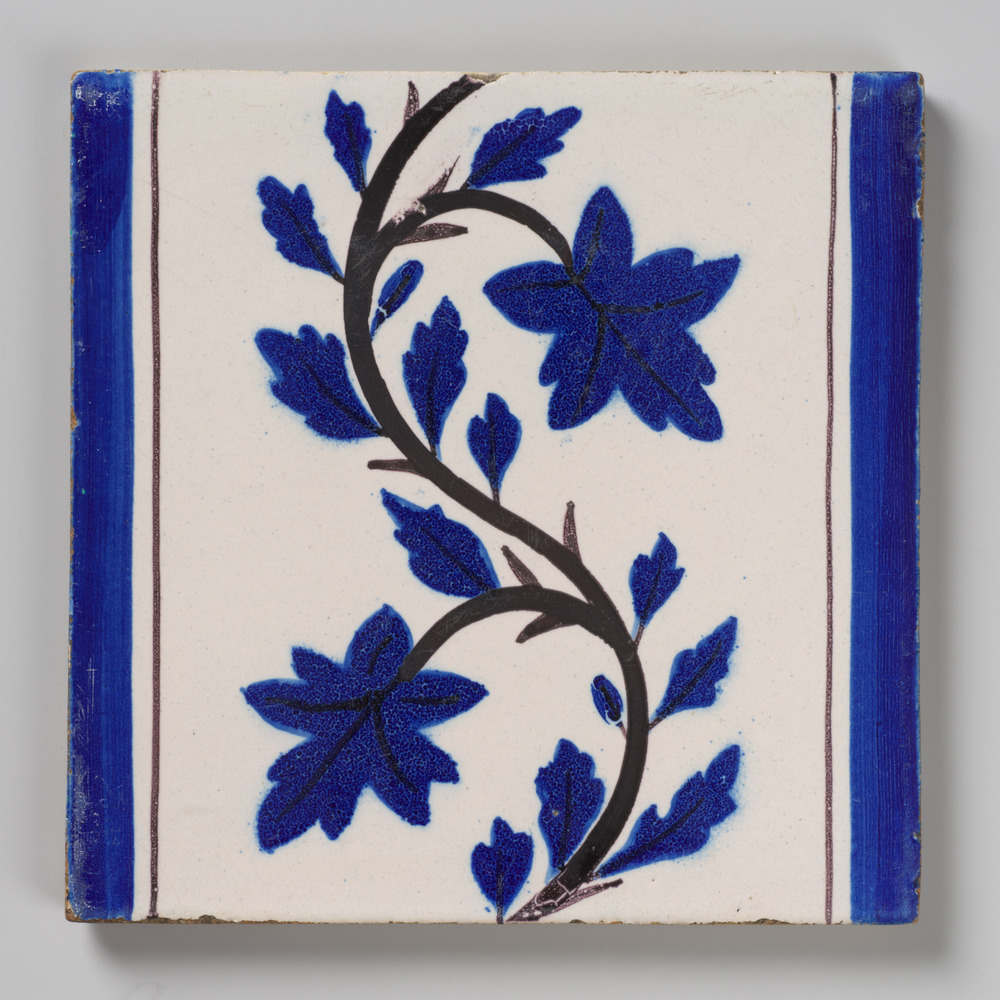 Tegel in tinglazuur, voorstellende ornament met flor...