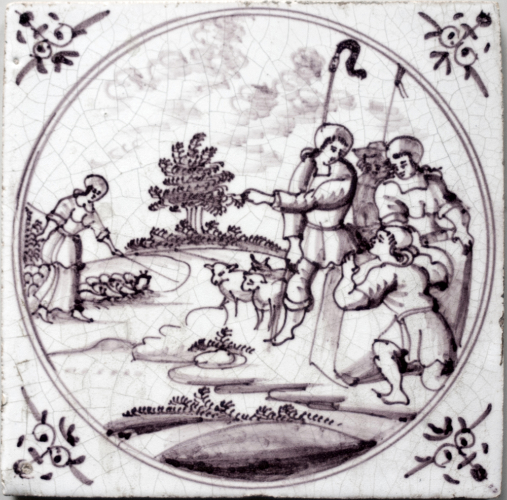 tegel van keramiek met tinglazuur, voorstellende: Ja...