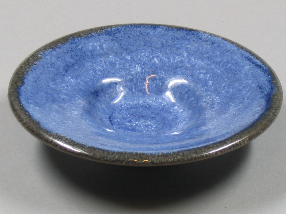 bord van keramiek, lichtblauw van kleur, onderkant b...