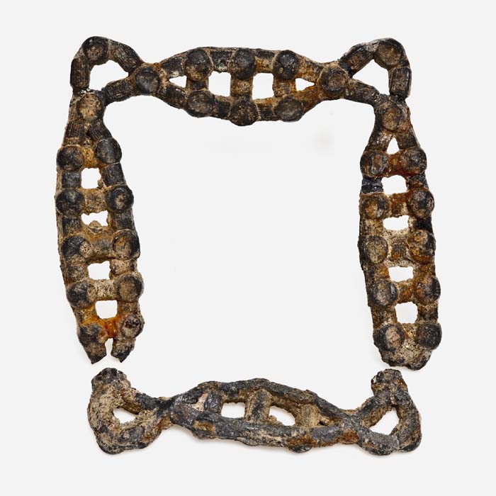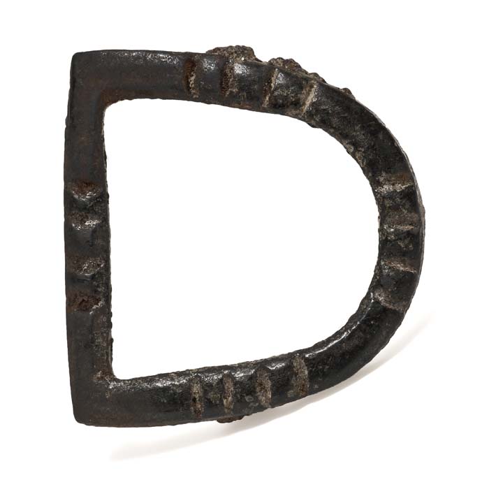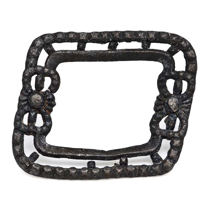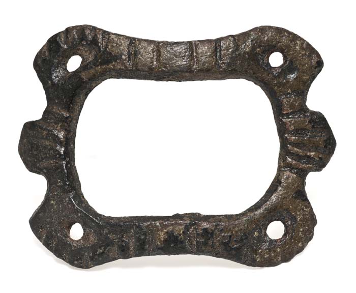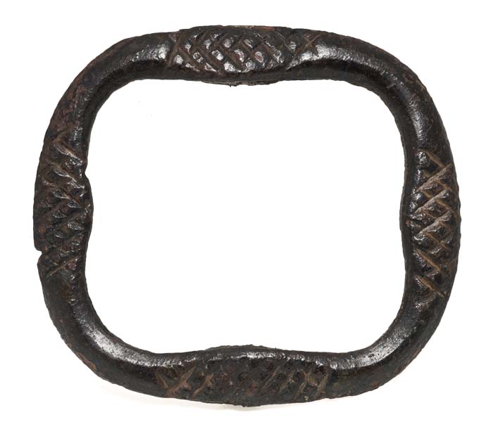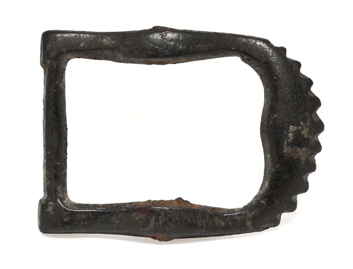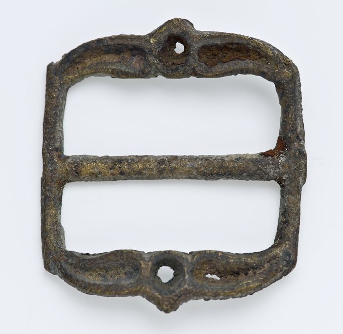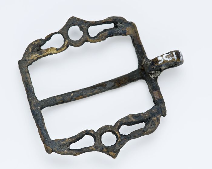 Metalen gesp, rechthoekig en gebogen, bewerkte lijst