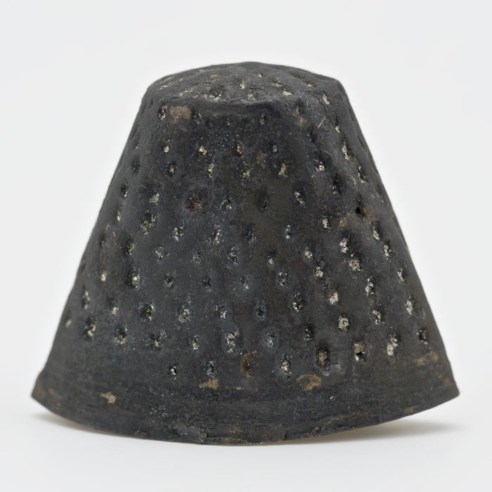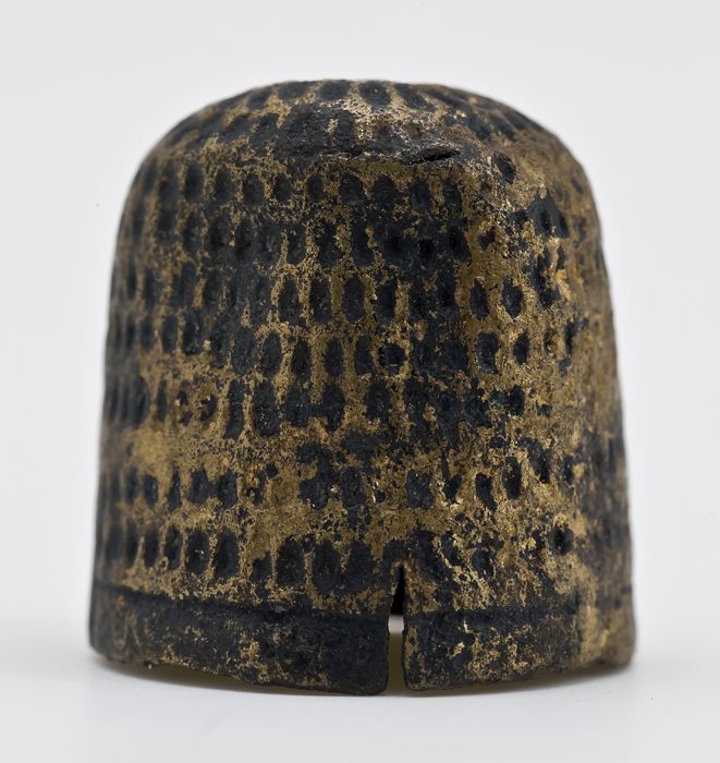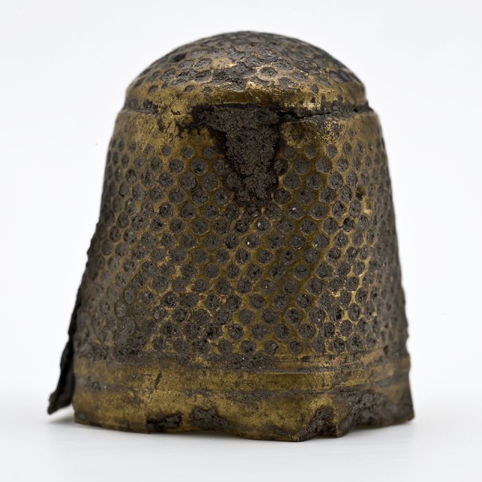 Koperen gegoten kindervingerhoed met wafelpatroon en...