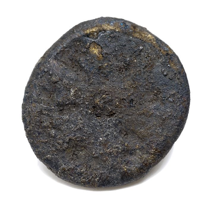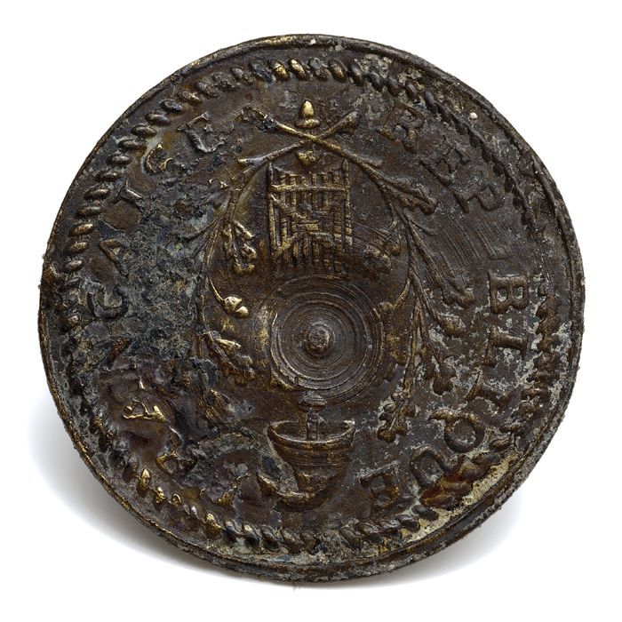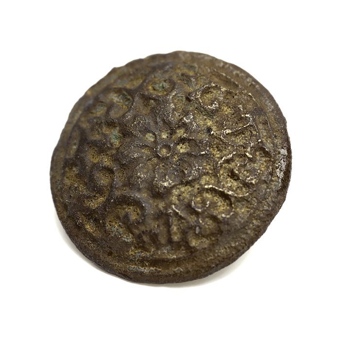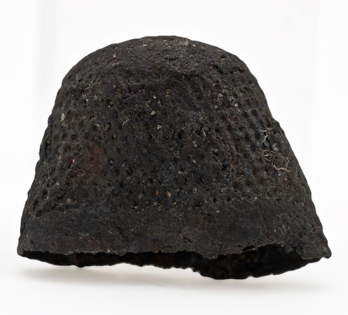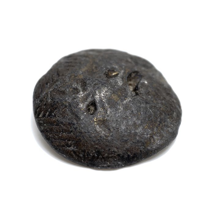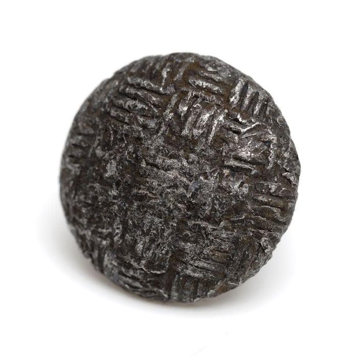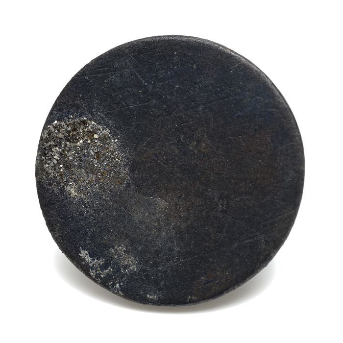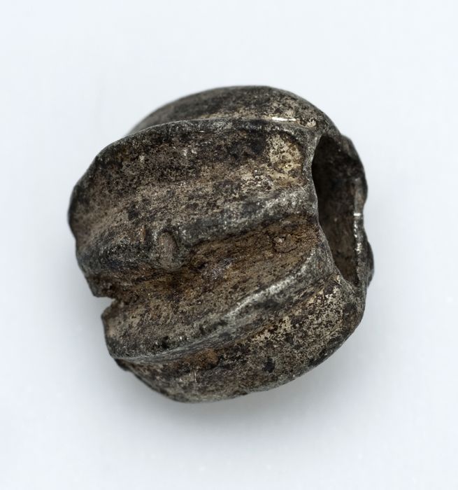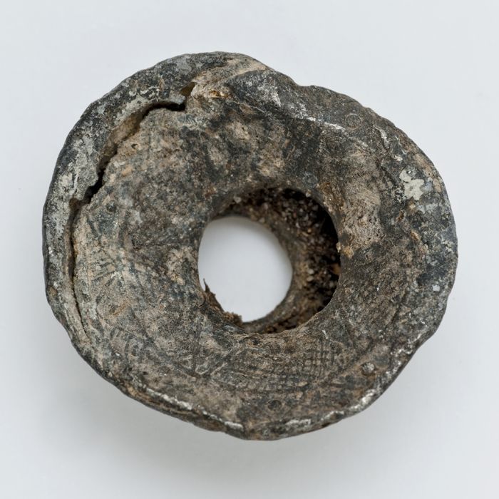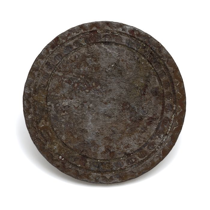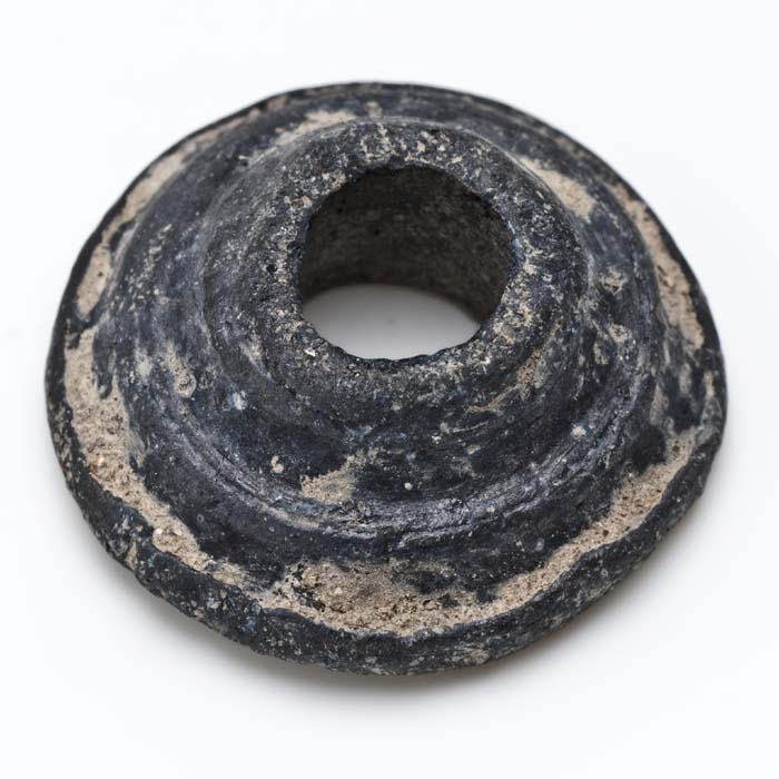 Tinnen object met rond gat, conisch en schijfvormig,...