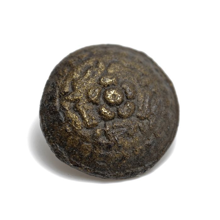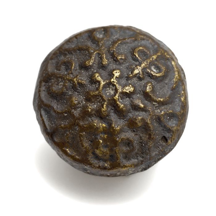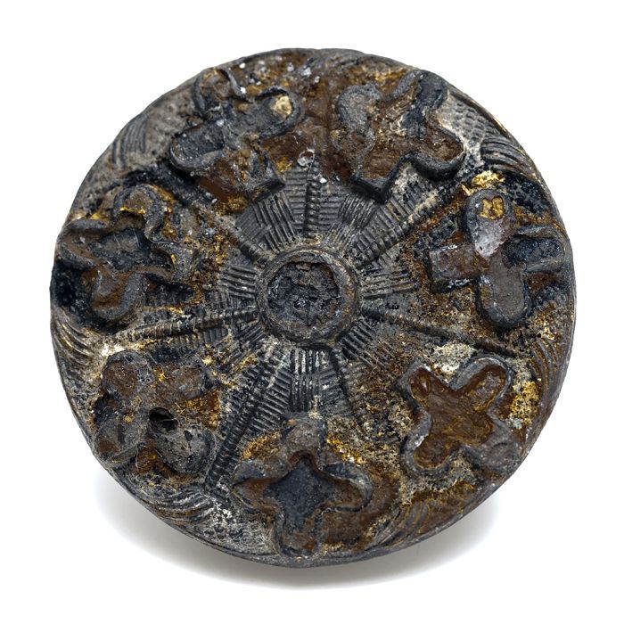 Platte knoop met radiaalpatroon, geëmailleerd (?)