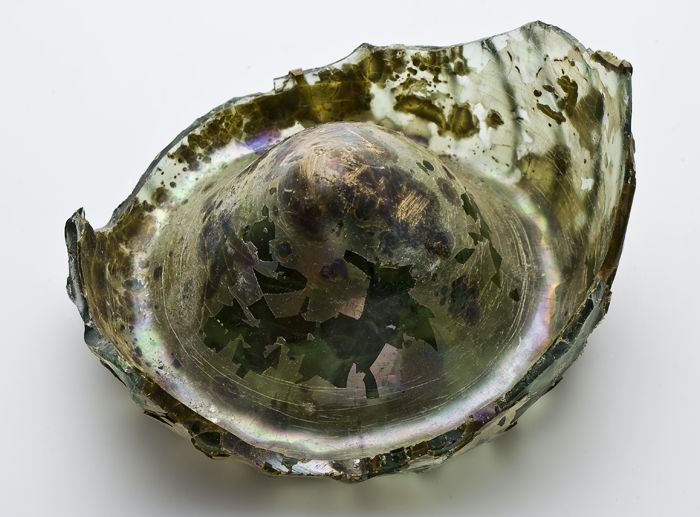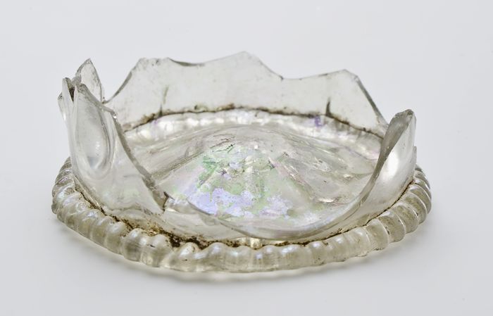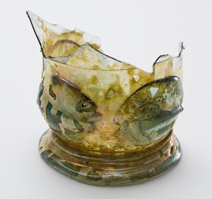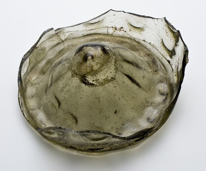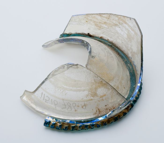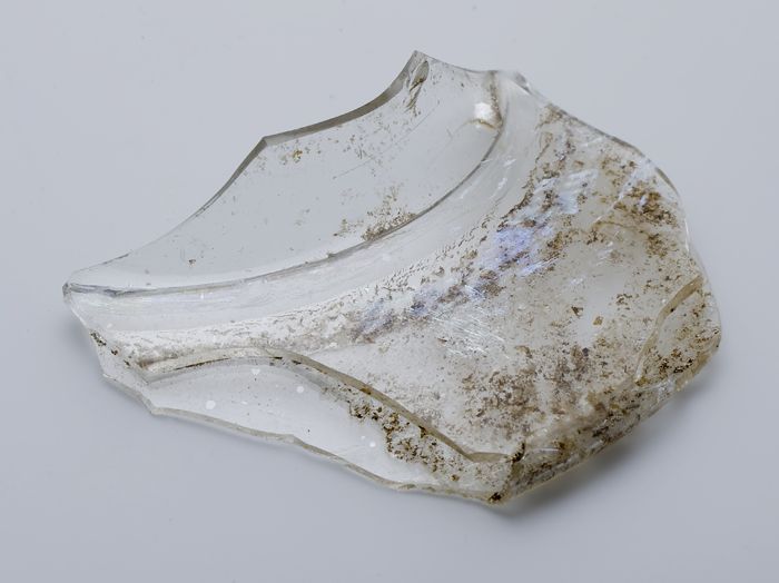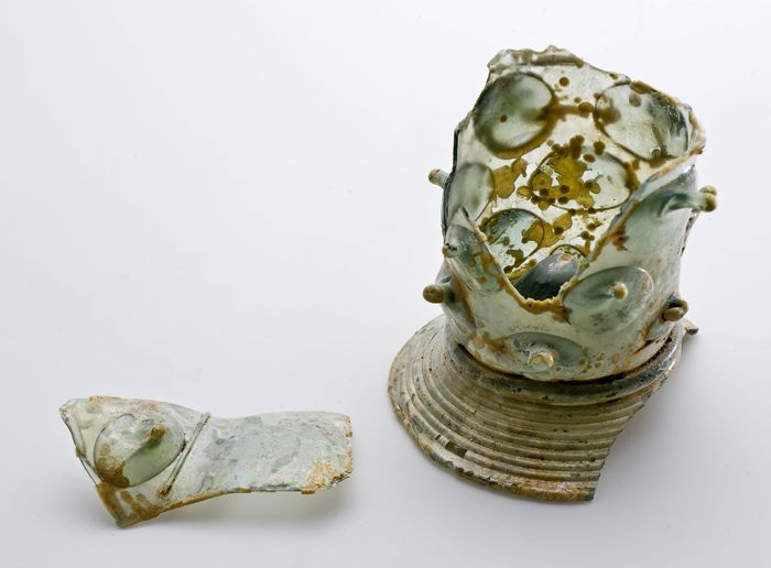 Twee fragmenten van bodem, voet en deel wand van gla...