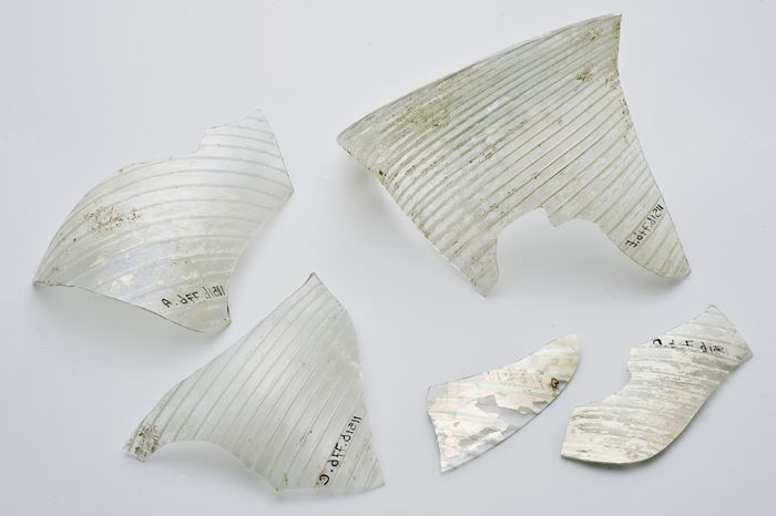 Zes tinnen fragmenten mogelijk afkomstig van draagin...