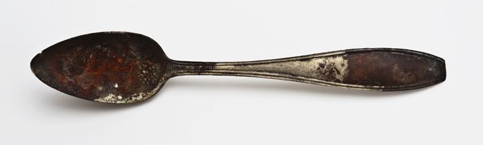 Theelepel met langwerpige ovale bak en versierde ste...