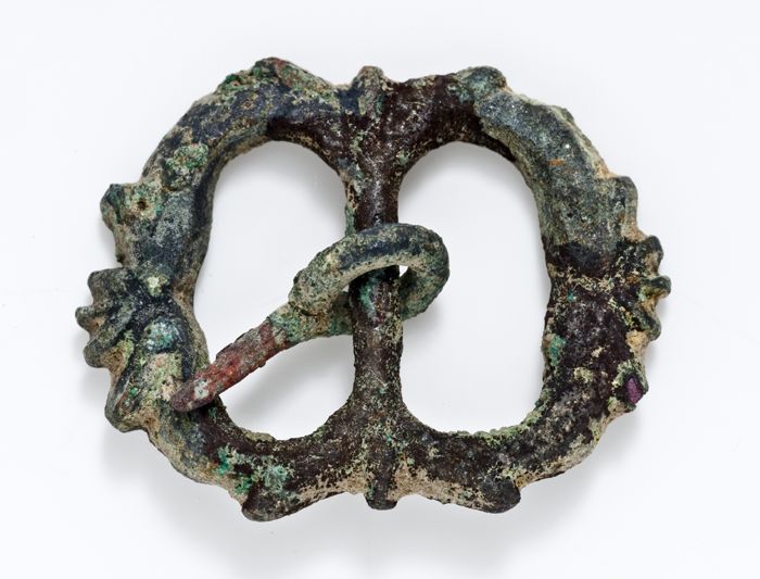 Opengewerkt beslag met gestileerde bloem in het midden