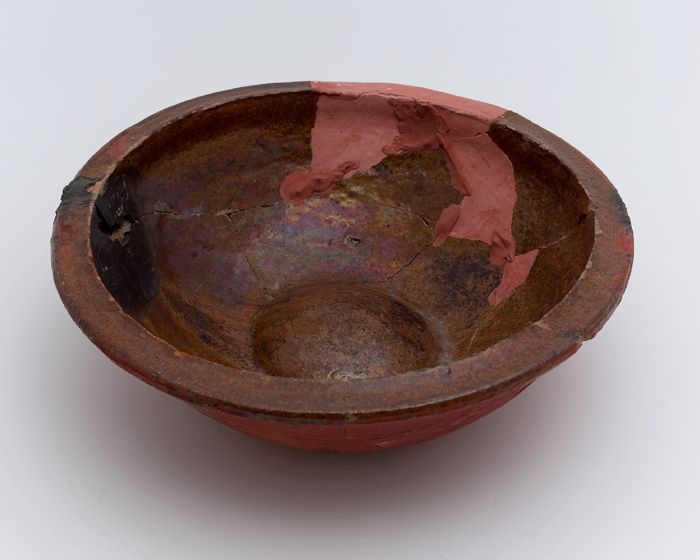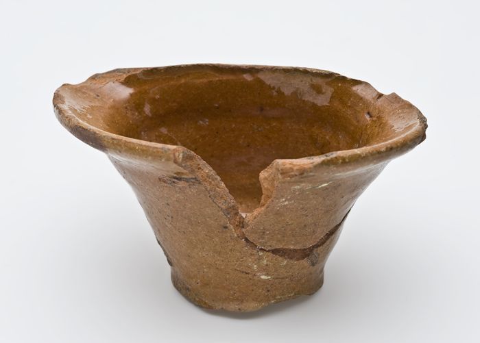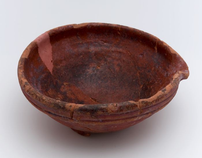 Aardewerk, kom of schaal op standvlak met ziel
