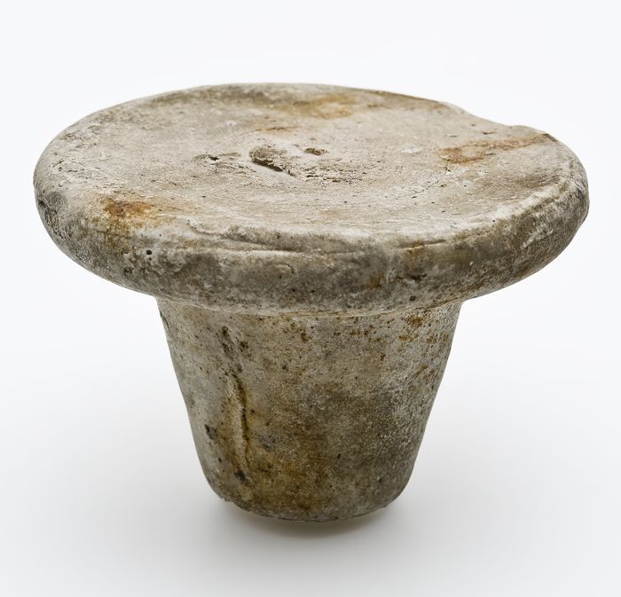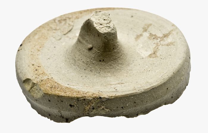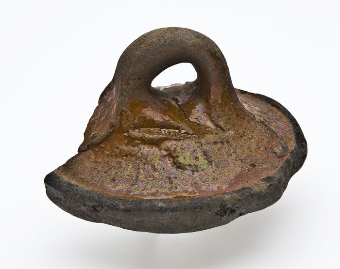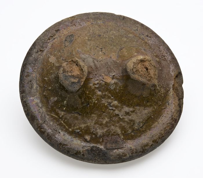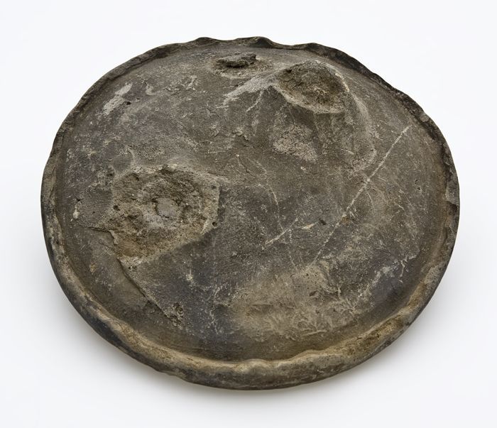 Deksel van aardewerk, donkergrijs, ongeglazuurd