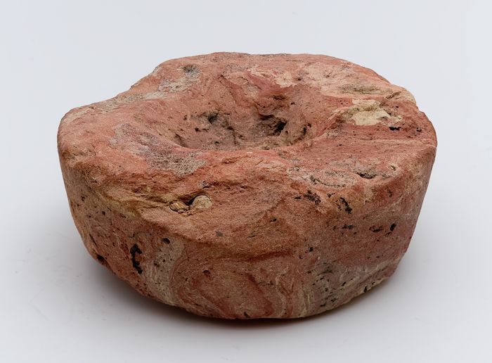 Aardewerken schijf met uitholling en tapse wanden