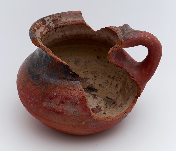 Zalfpot, buikmodel, rood aardewerk