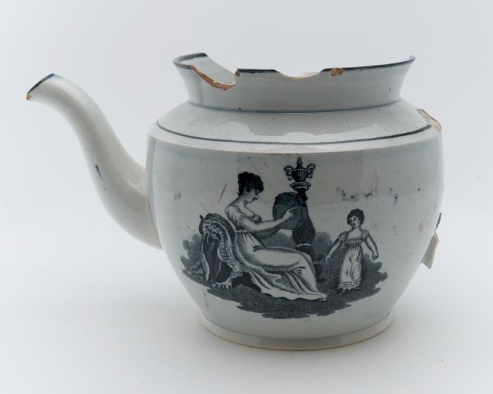 Porseleinen theepot gedecoreerd met klassieke voorst...