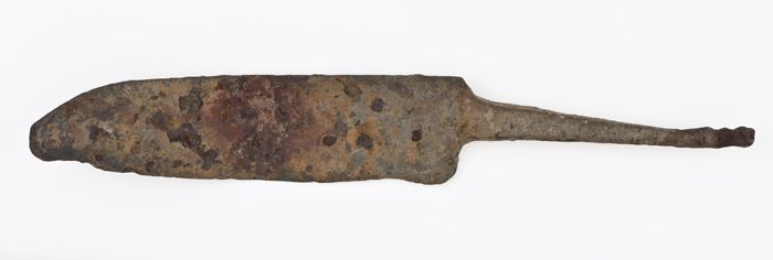 Lemmet met afgebroken uiteinde en versmalde angel