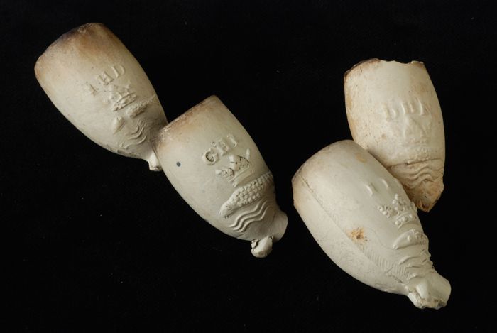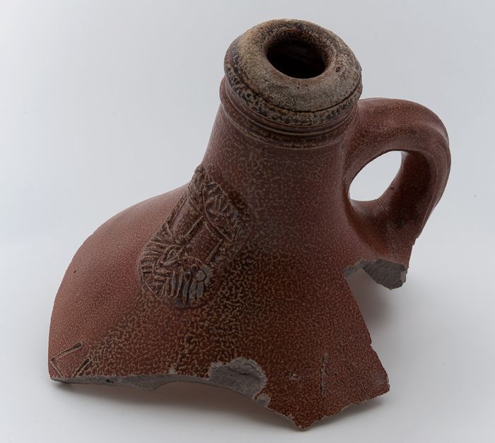 Hals van baardmankruik met oor en baardman, gemerkt