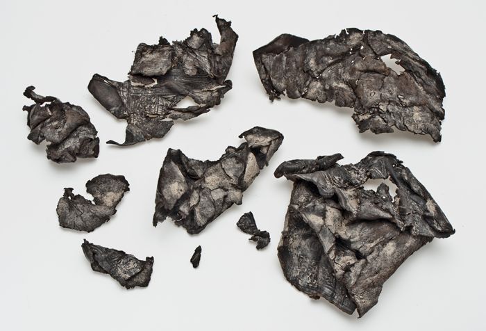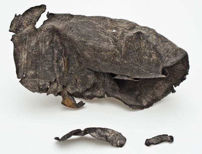 Tien fragmenten van versierde, leren boekband