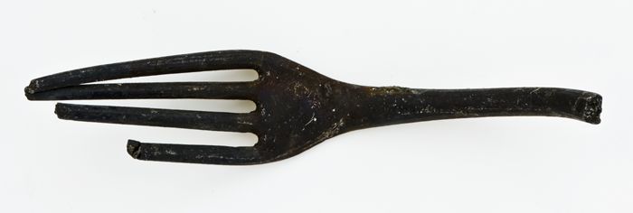 Vork met vier tanden en afgeplatte zeskantige steel