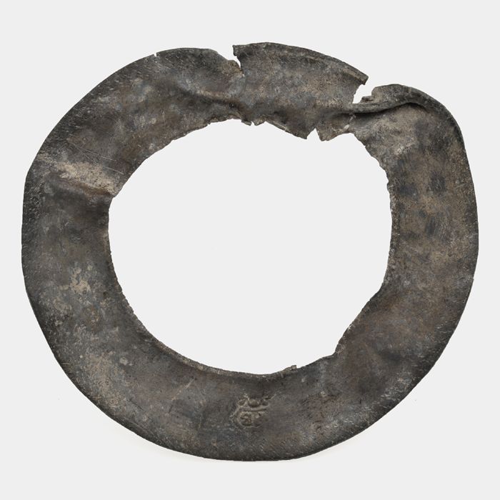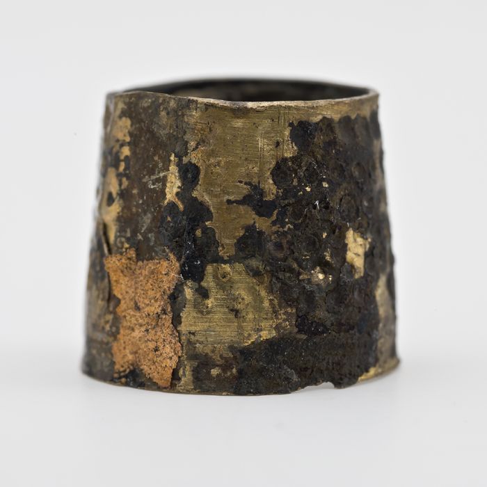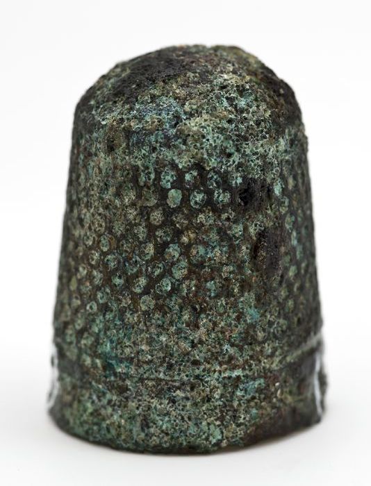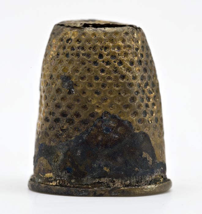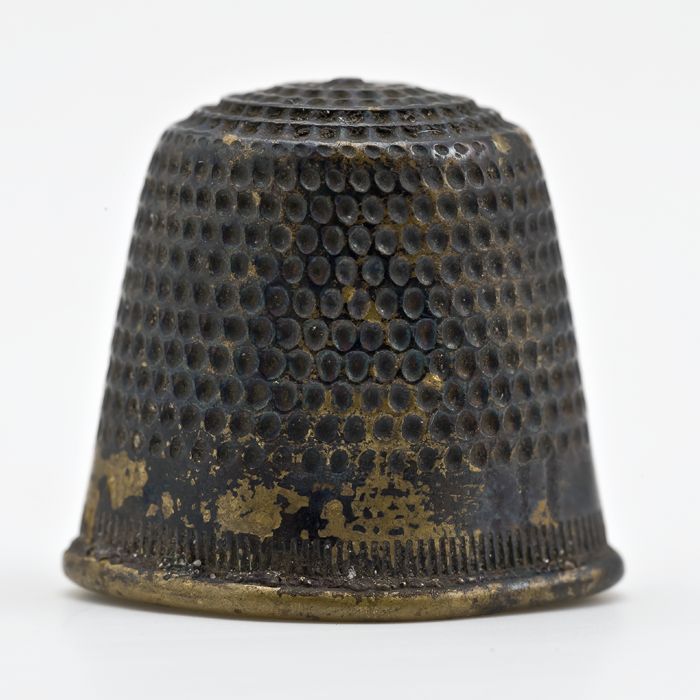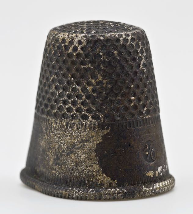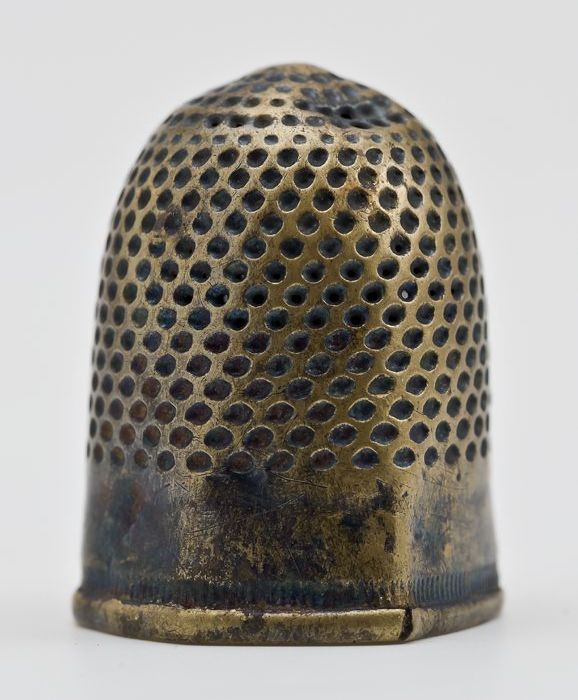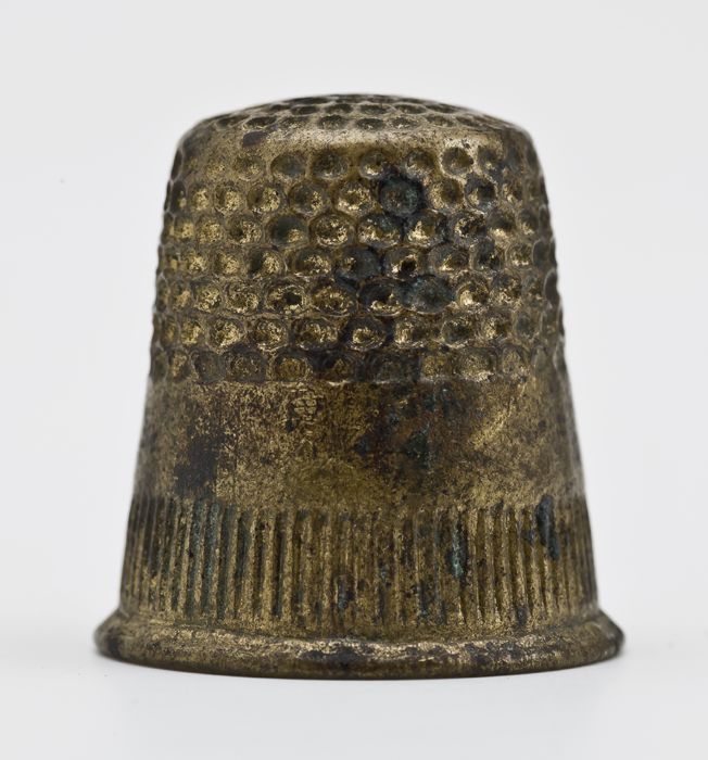 Gegoten 'franse' vingerhoed met brede boord en maat