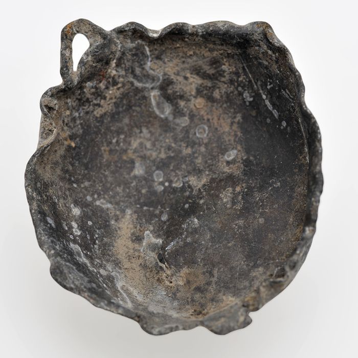 Tinnen pan of papkom, speelgoed, met opstaande zijwa...