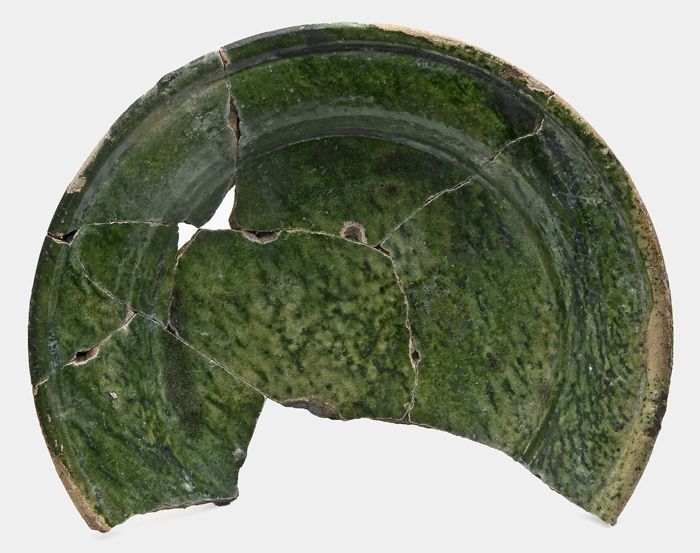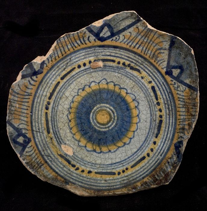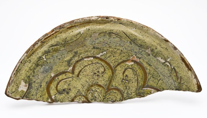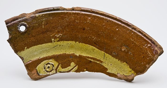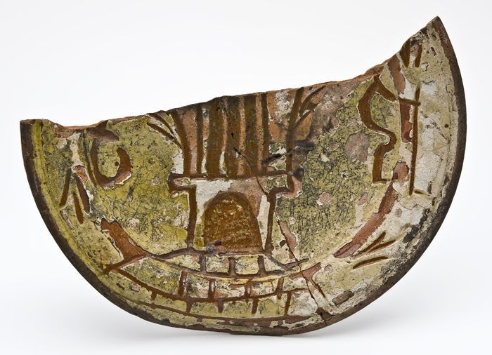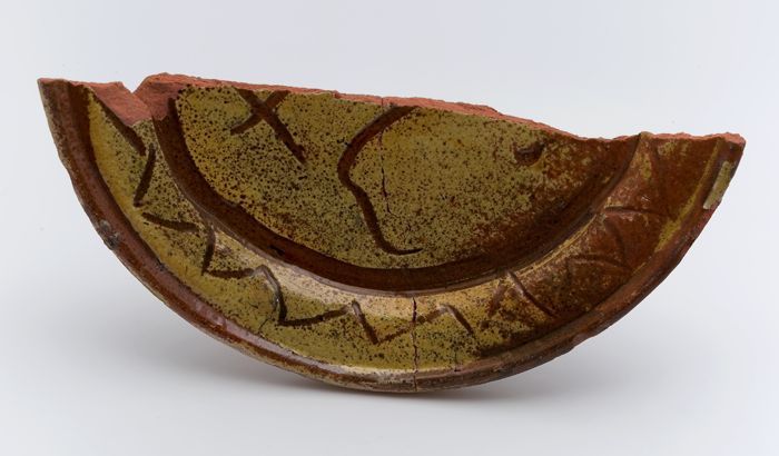 Fragment aardewerk schotel met sgraffito en slibtech...