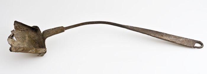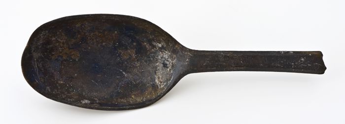 Ovale bak van lepel met afgeplatte, vierkantige steel