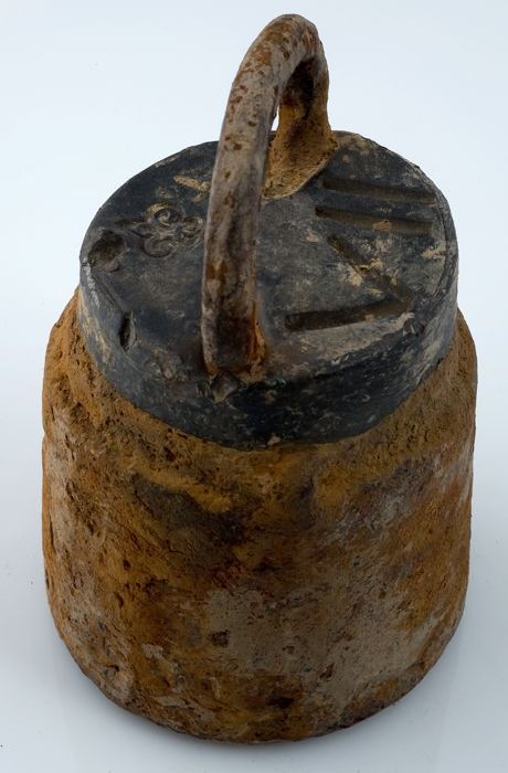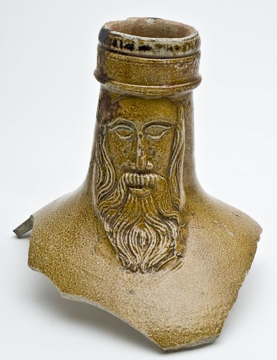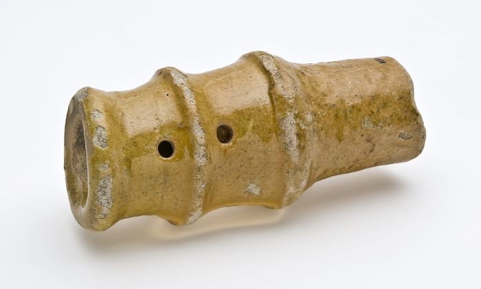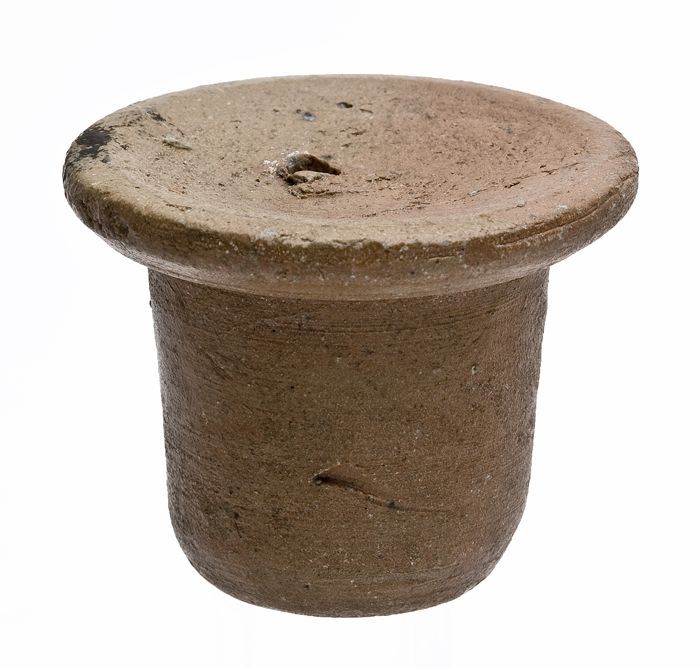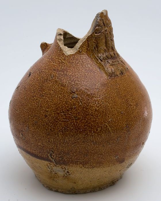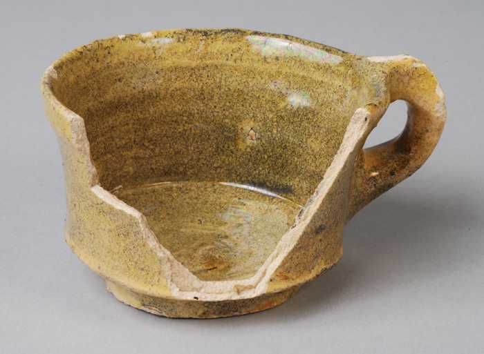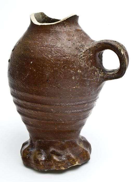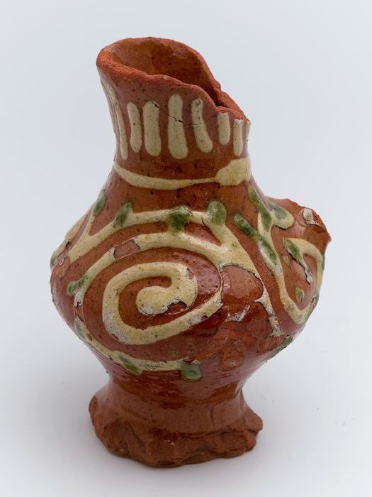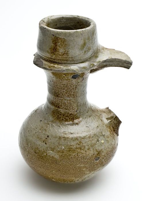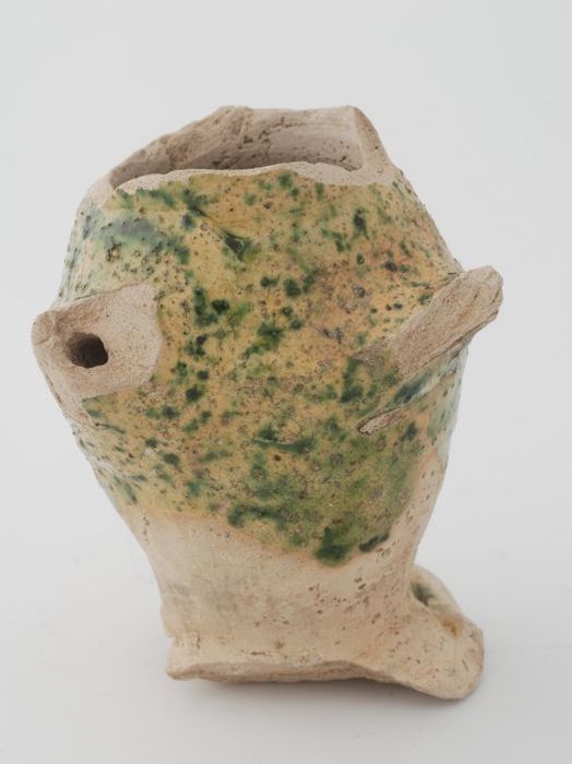 Steengoed zuigfles gedeeltelijk groen geglazuurd