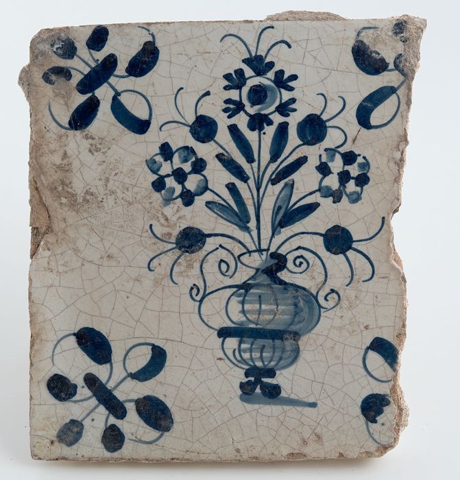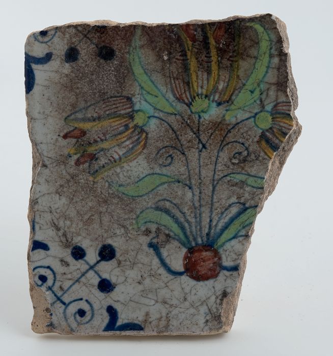 Fragment tegel met centraal meerkleurig bloemstuk, h...