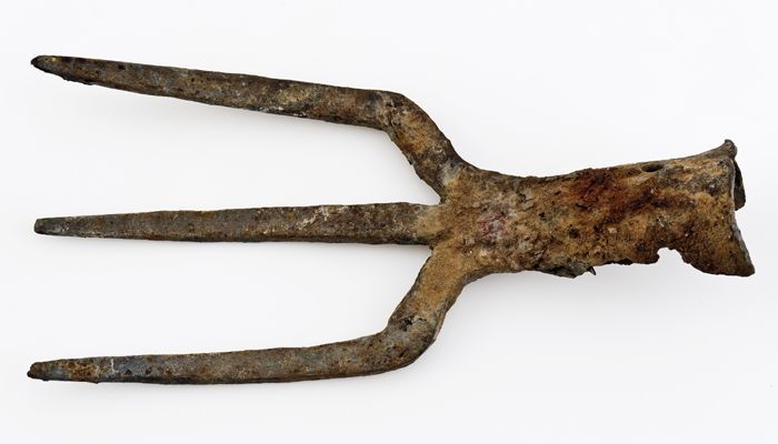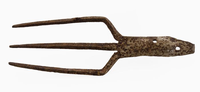 Vork met (oorspronkelijk) vier tanden en platte stee...