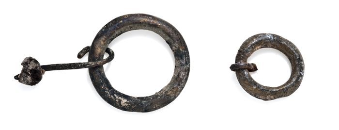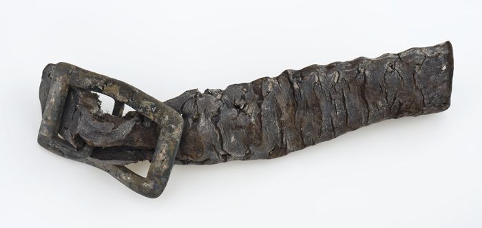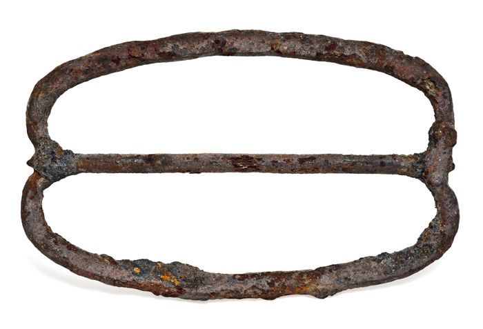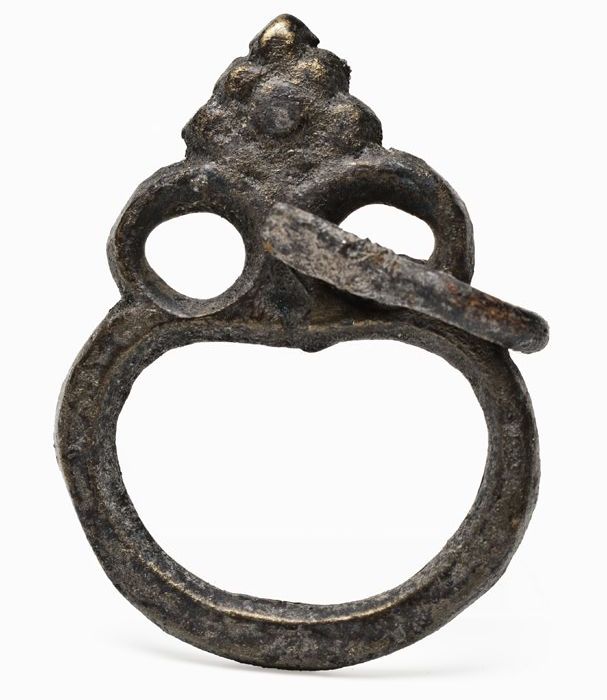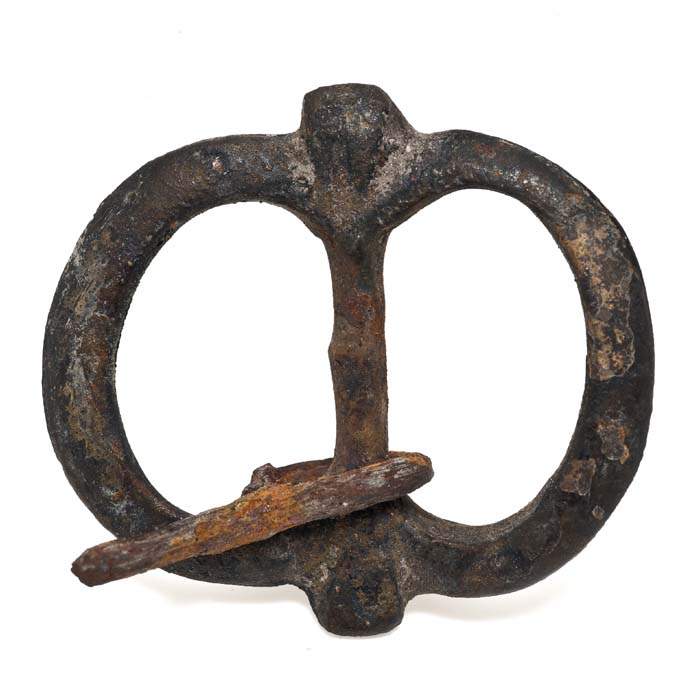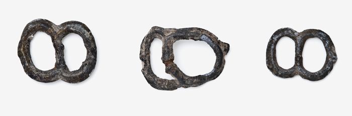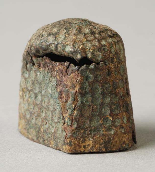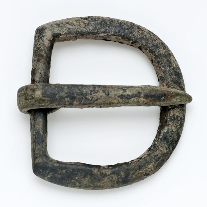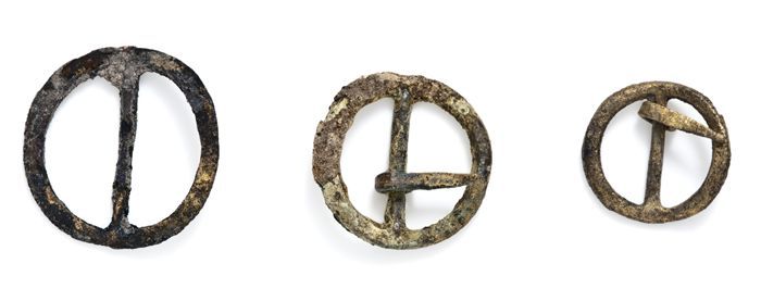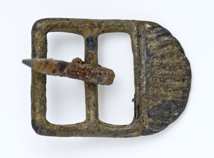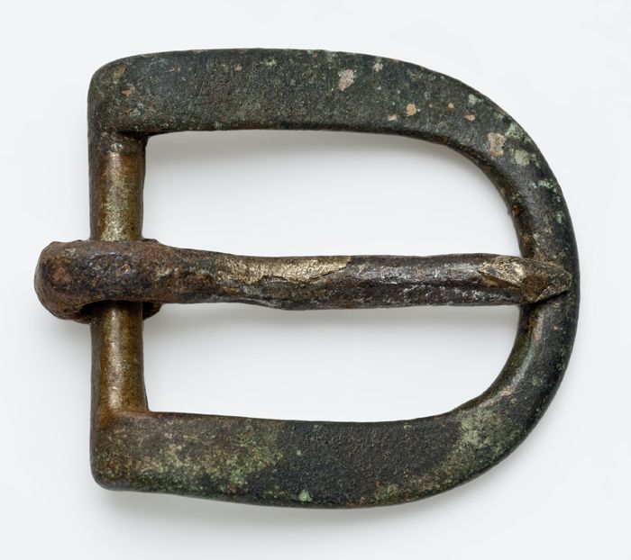 Koperen of bronzen sluiting van gordel met drie ogen...